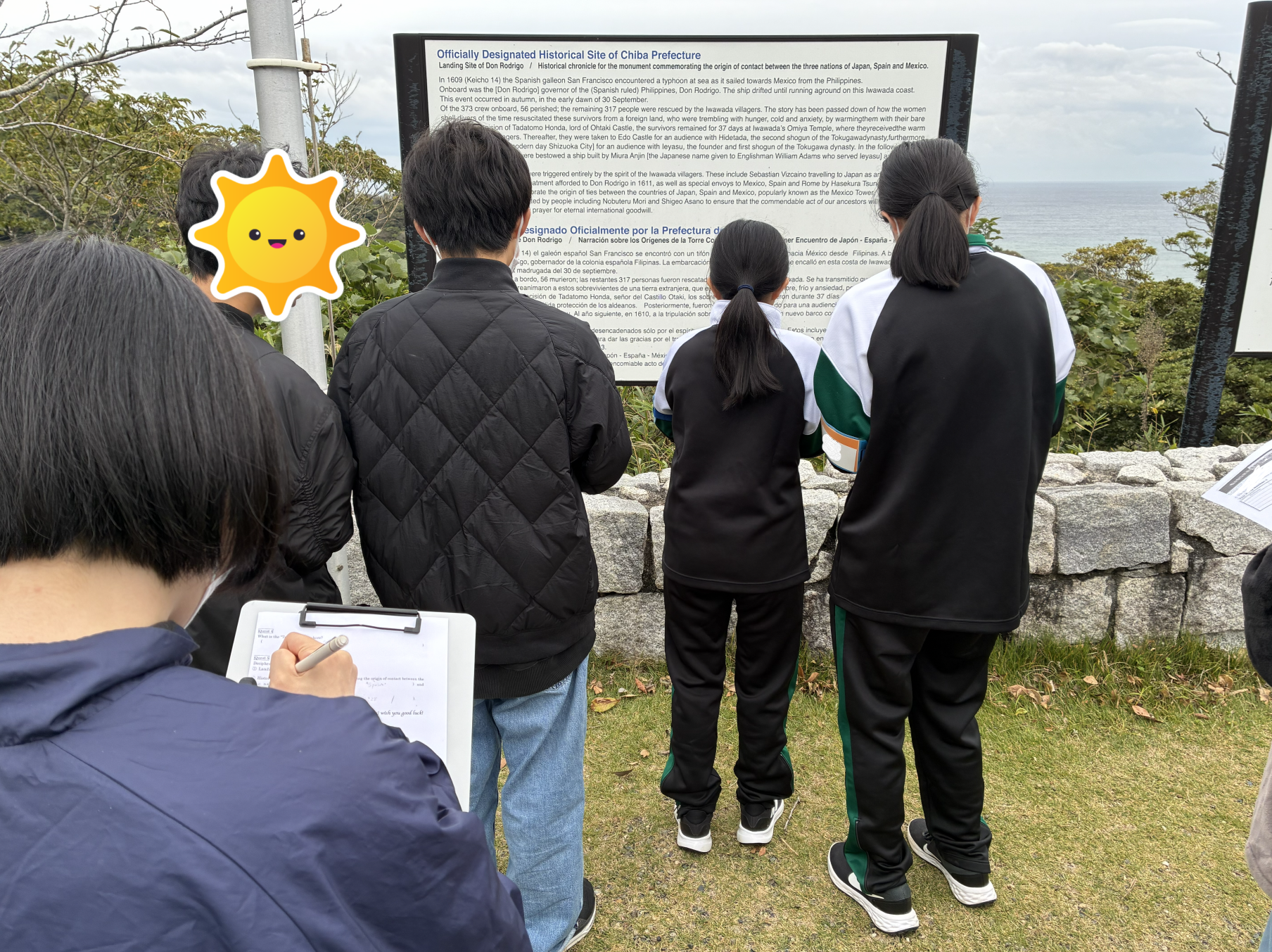 続いては、英語の授業で訪れたメキシコ塔です。課せられたクエストをクリアしようと班(パーティー)のメンバーで協力しているところですね。