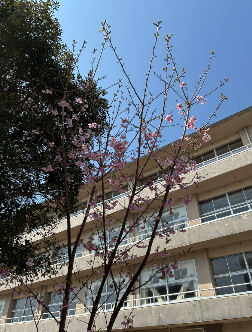 さて、御宿本校の敷地内には、春の訪れを表す、桜の花が咲いています🌸卒業した生徒が、入学時に植えた桜もこんなに大きくなりました❗